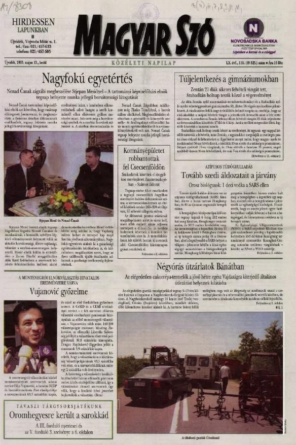 Magyar Szó, 60. évf. 2003. május 13. 111. sz. 1–16. oldal