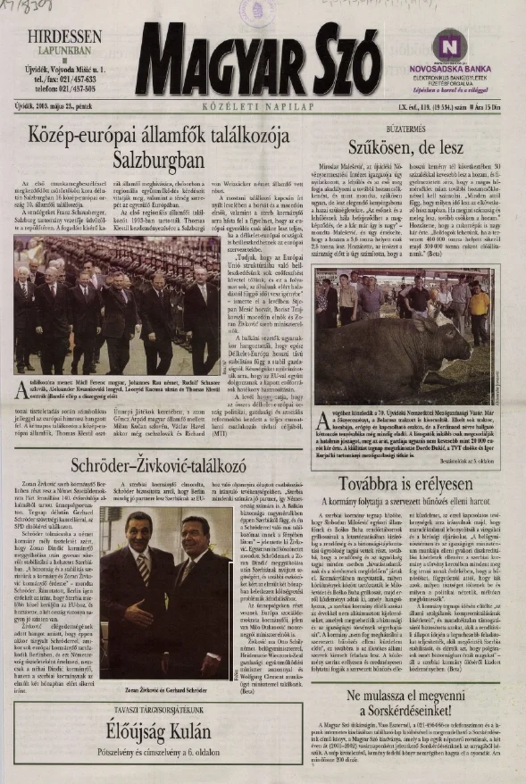 Magyar Szó, 60. évf. 2003. május 23. 120. sz. 1–16. oldal