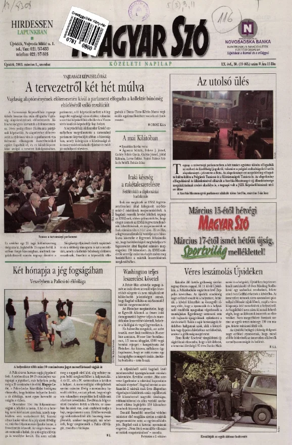 Magyar Szó, 60. évf. 2003. március 1. 50. sz. 1–16. oldal