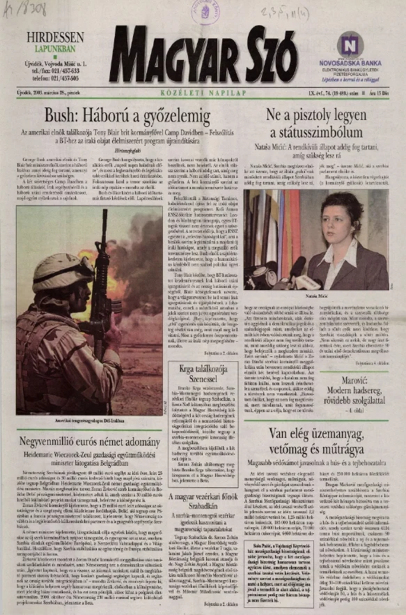 Magyar Szó, 60. évf. 2003. március 28. 74. sz. 1–16. oldal