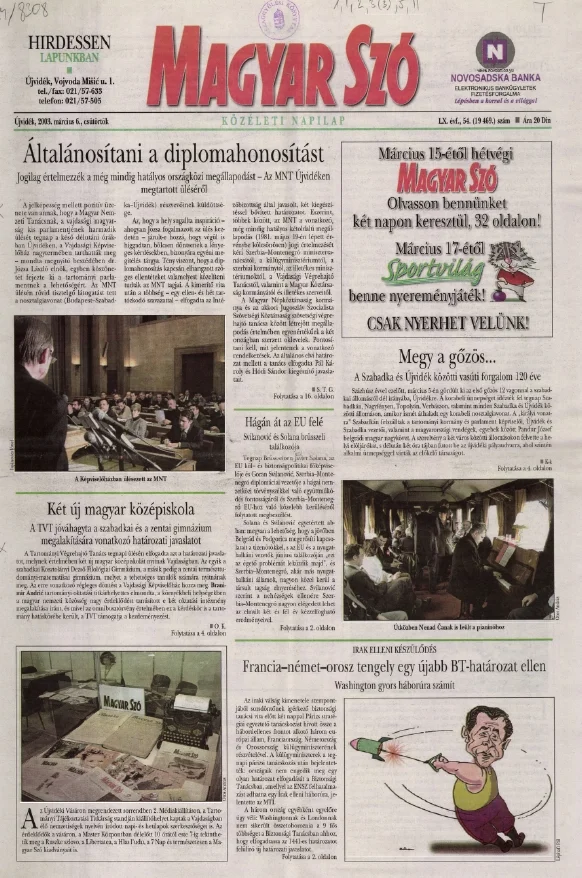Magyar Szó, 60. évf. 2003. március 6. 54. sz. 1–16. oldal