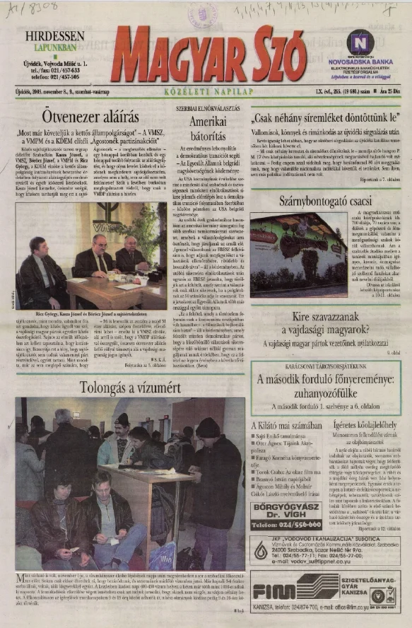Magyar Szó, 60. évf. 2003. november 8. – 9. 265. sz. 1–36. oldal