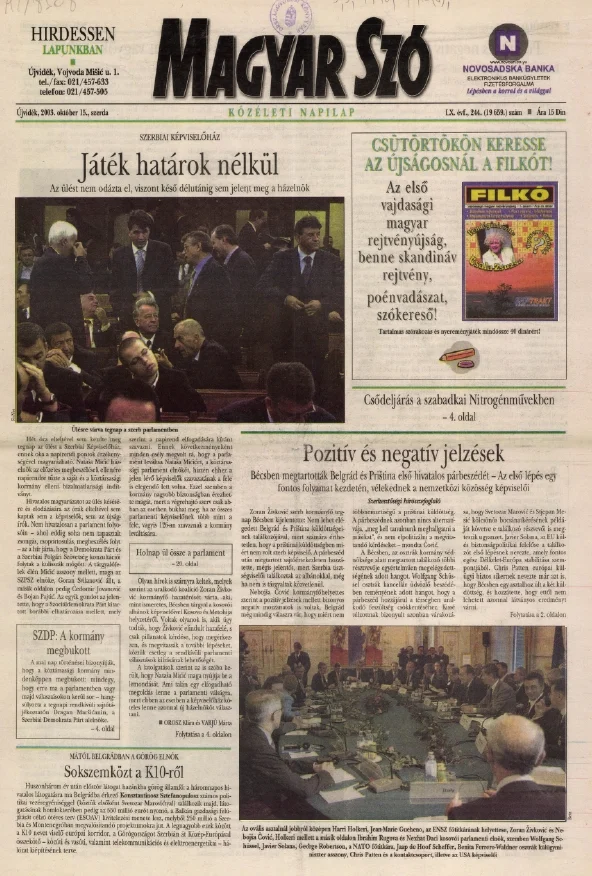 Magyar Szó, 60. évf. 2003. október 15. 244. sz. 1–20. oldal