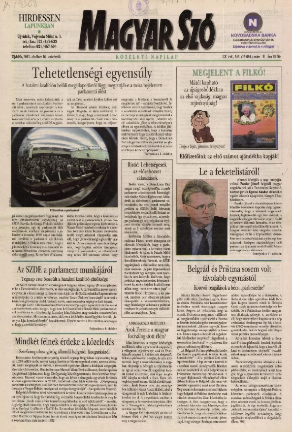 Magyar Szó, 60. évf. 2003. október 16. 245. sz. 1–20. oldal