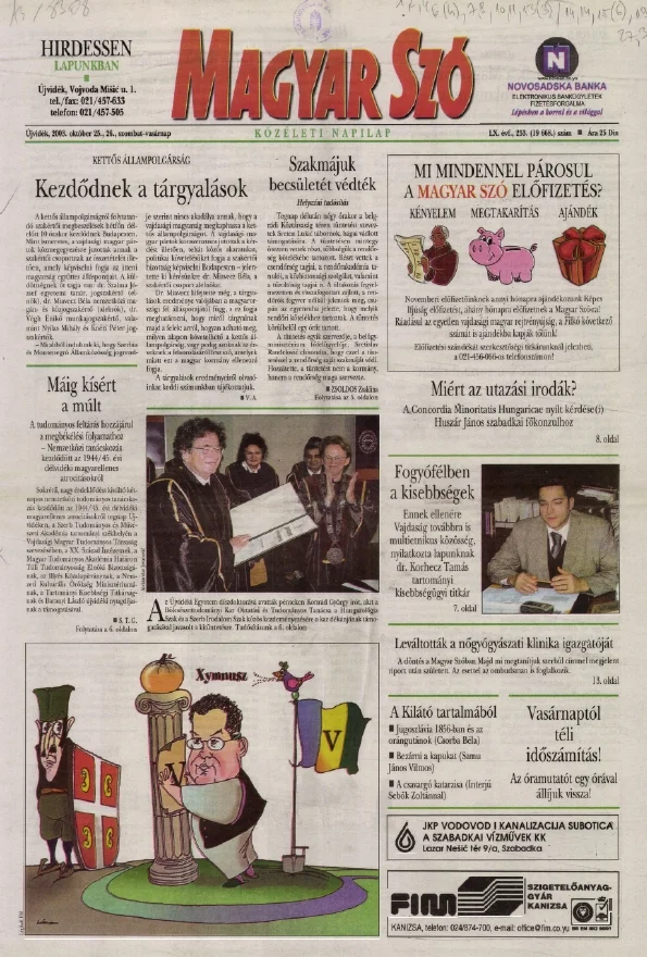 Magyar Szó, 60. évf. 2003. október 25. – 26. 253. sz. 1–20. oldal