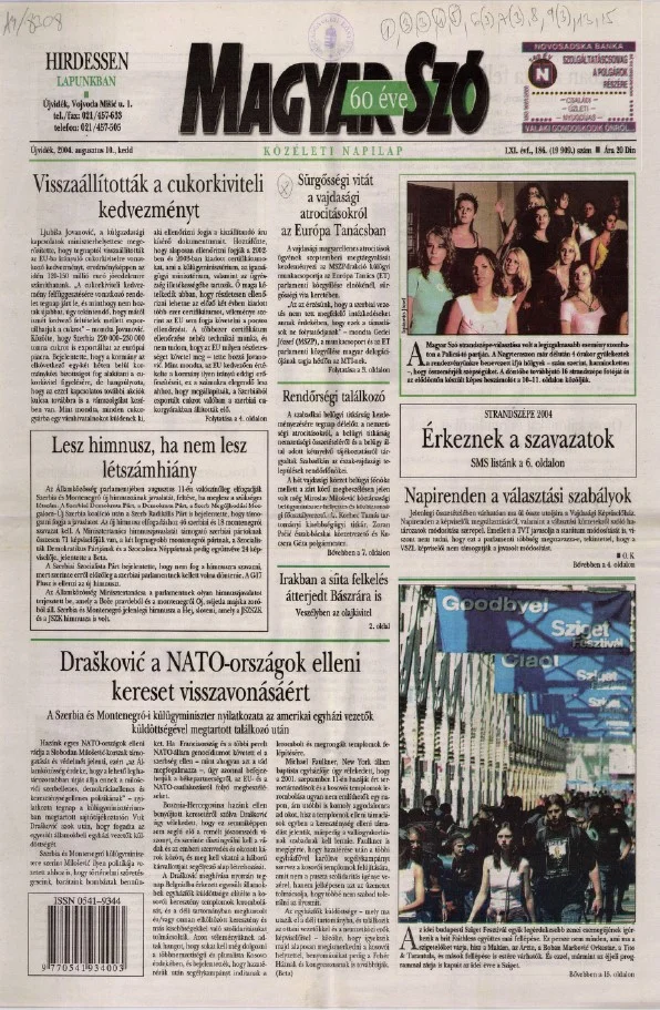 Magyar Szó, 61. évf. 2004. augusztus 10. 186. sz. 1–20. oldal