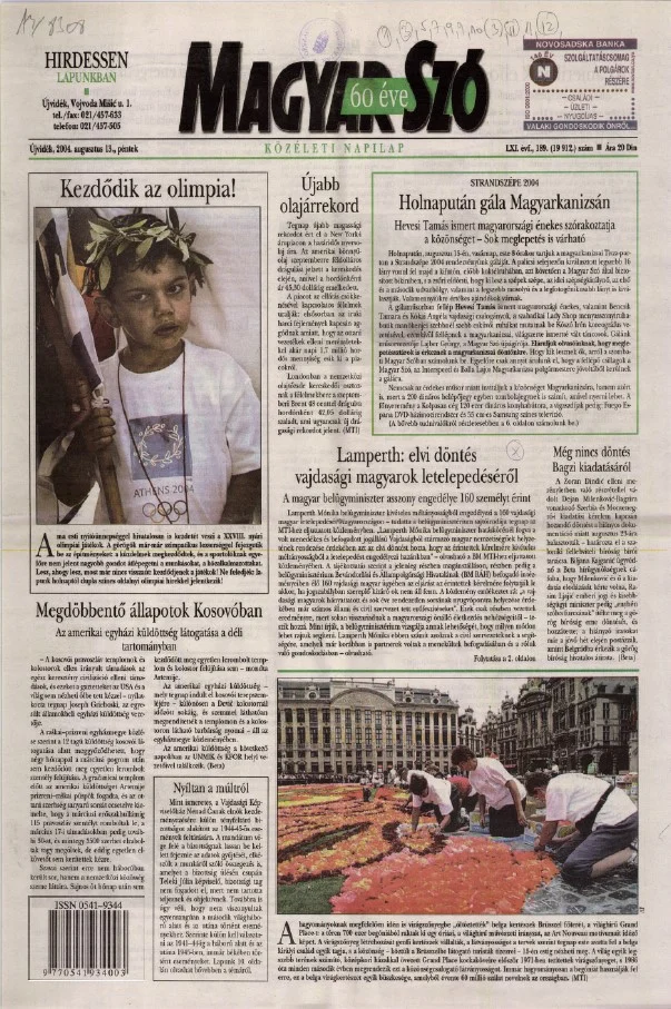 Magyar Szó, 61. évf. 2004. augusztus 13. 189. sz. 1–20. oldal