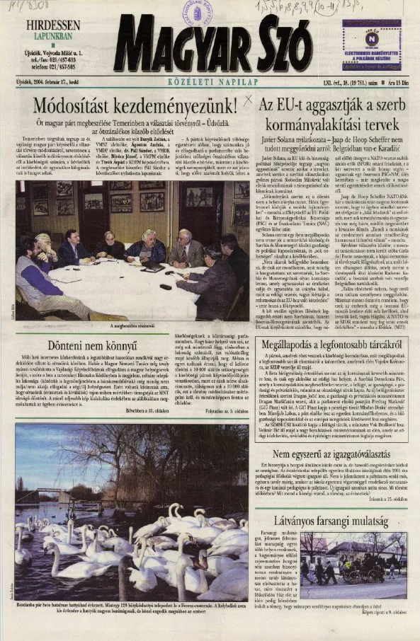 Magyar Szó, 61. évf. 2004. február 17. 38. sz. 1–20. oldal