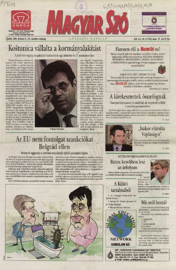 Magyar Szó, 61. évf. 2004. február 21. – 22. 42. sz. 1–36. oldal