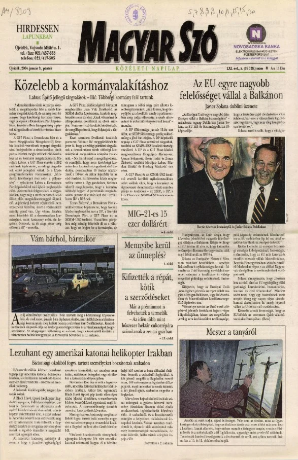 Magyar Szó, 61. évf. 2004. január 9. 5. sz. 1–20. oldal