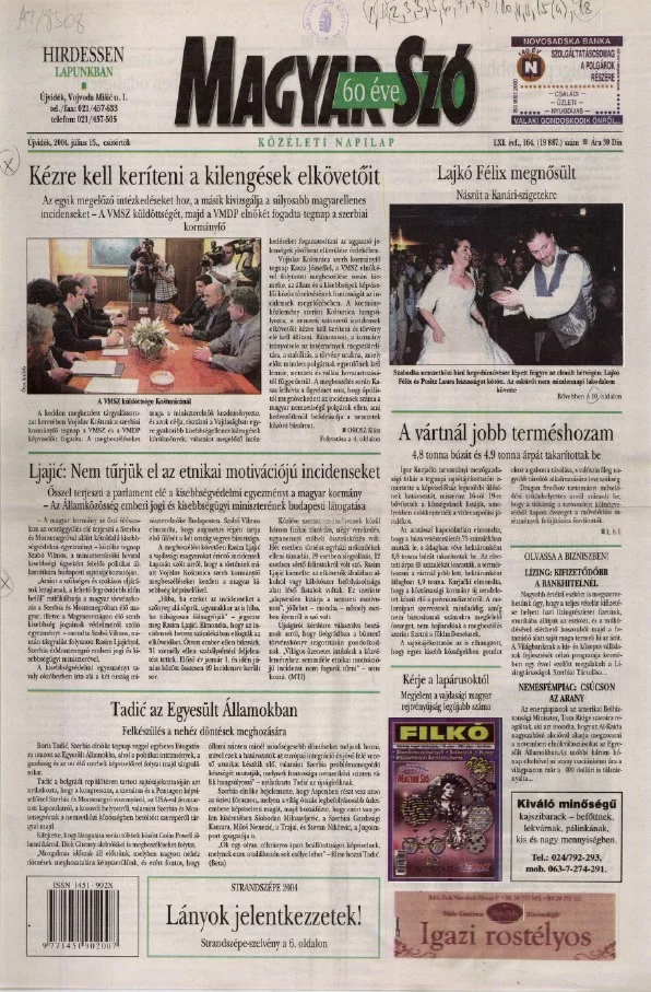 Magyar Szó, 61. évf. 2004. július 15. 164. sz. 1–20. oldal