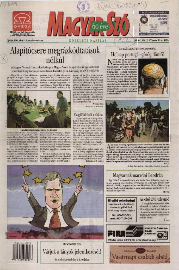 Magyar Szó, 61. évf. 2004. július 3. – 4. 154. sz. 1–24. oldal
