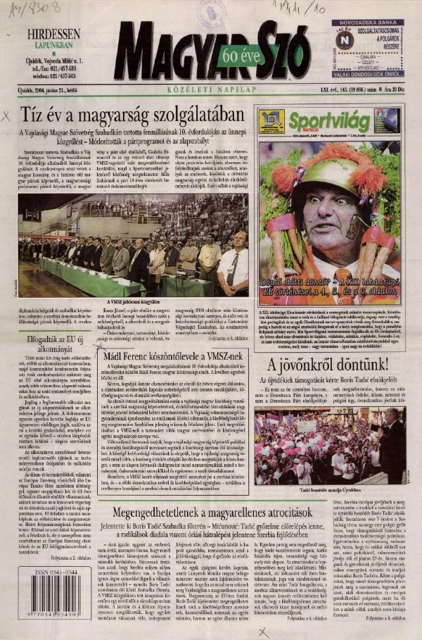 Magyar Szó, 61. évf. 2004. június 21. 143. sz. 1–12. oldal