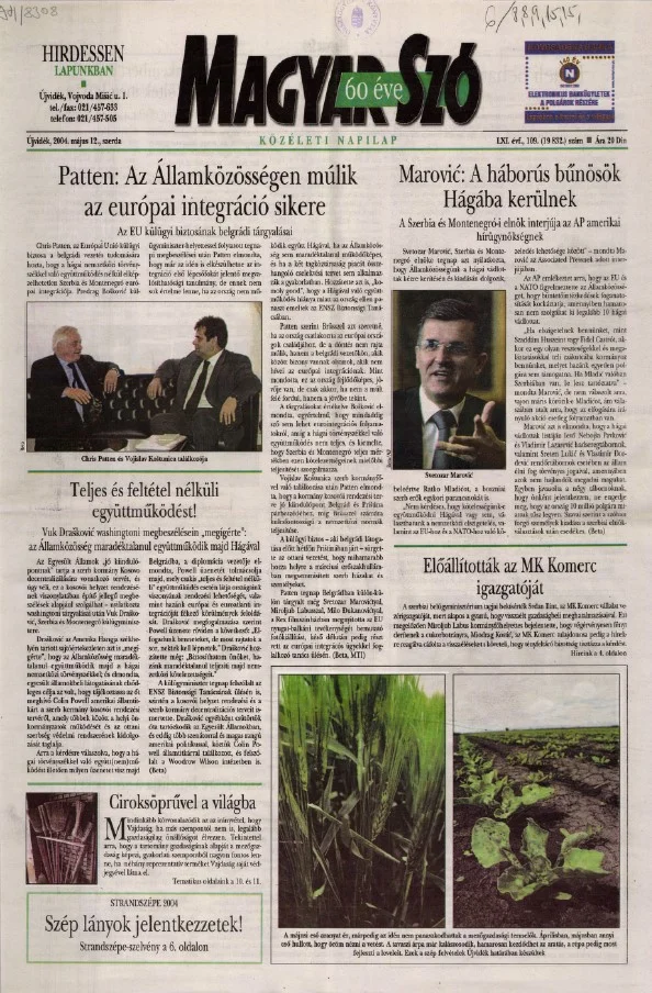 Magyar Szó, 61. évf. 2004. május 12. 109. sz. 1–20. oldal