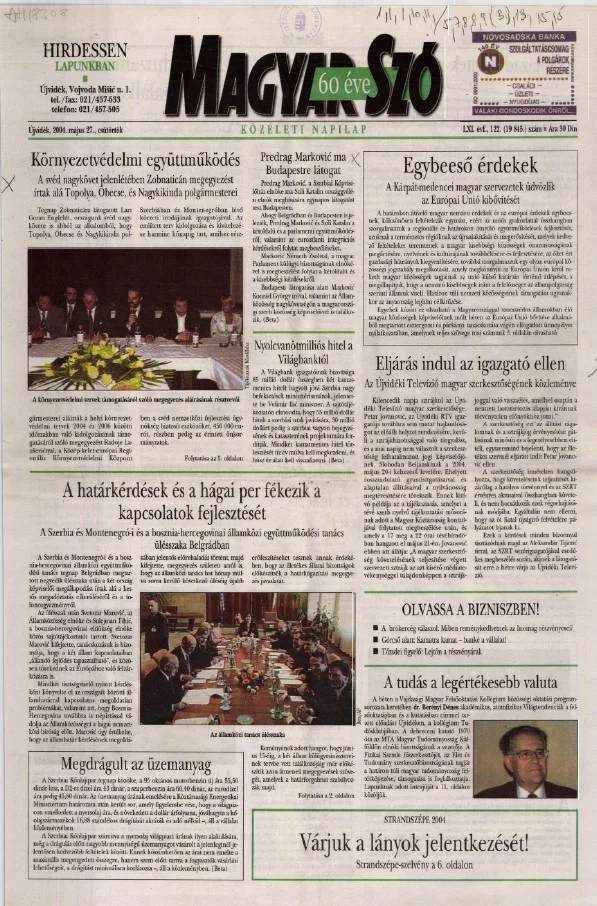 Magyar Szó, 61. évf. 2004. május 27. 122. sz. 1–20. oldal