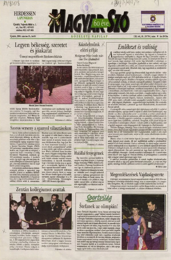 Magyar Szó, 61. évf. 2004. március 15. 61. sz. 1–16. oldal
