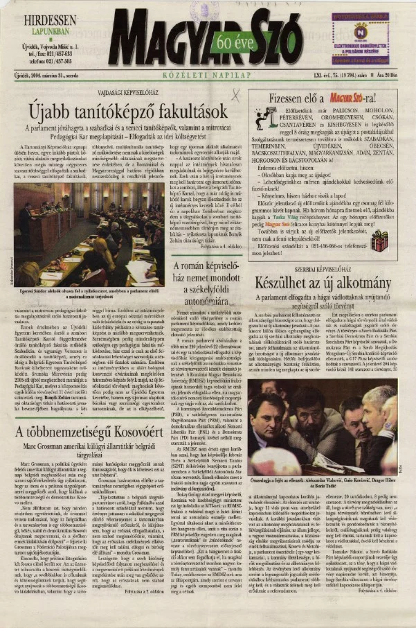 Magyar Szó, 61. évf. 2004. március 31. 75. sz. 1–20. oldal
