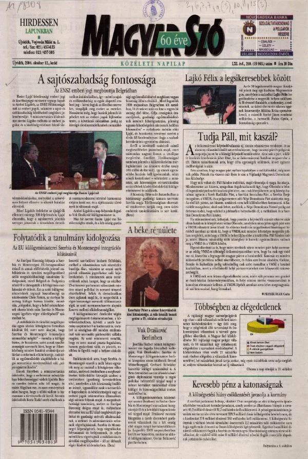 Magyar Szó, 61. évf. 2004. október 12. 240. sz. 1–20. oldal