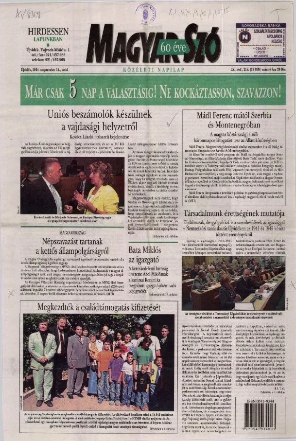 Magyar Szó, 61. évf. 2004. szeptember 14. 216. sz. 1–20. oldal