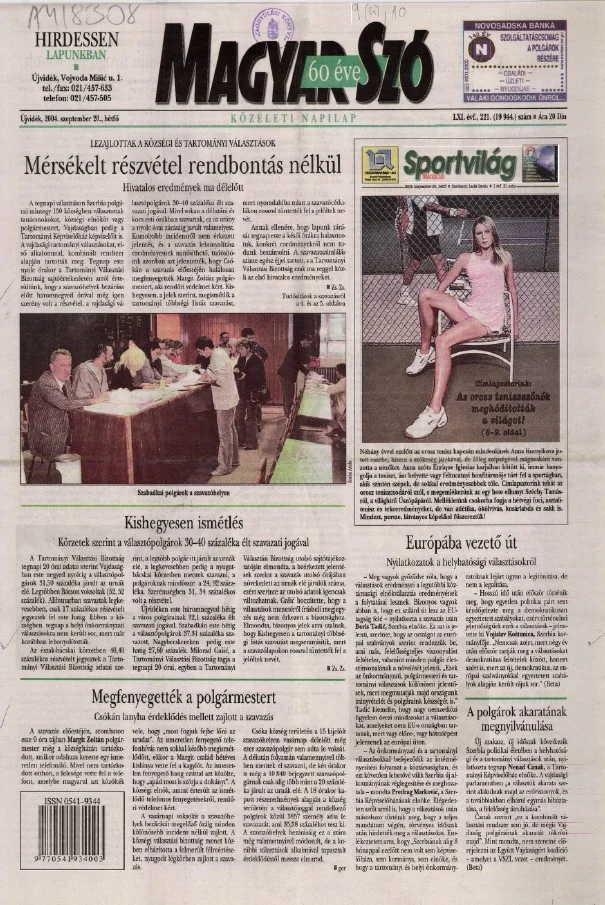 Magyar Szó, 61. évf. 2004. szeptember 20. 221. sz. 1–12. oldal