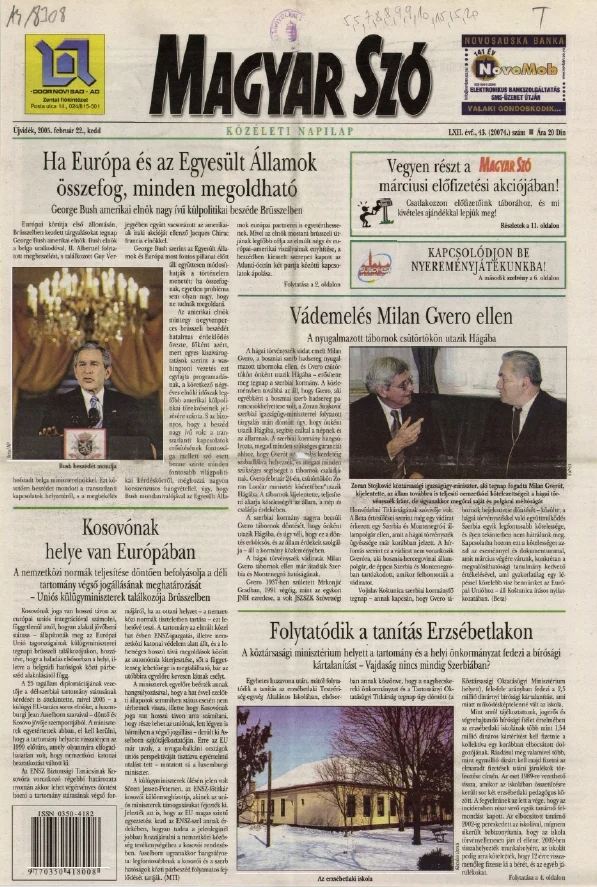 Magyar Szó, 62. évf. 2005. február 22. 43. sz. 1–20. oldal