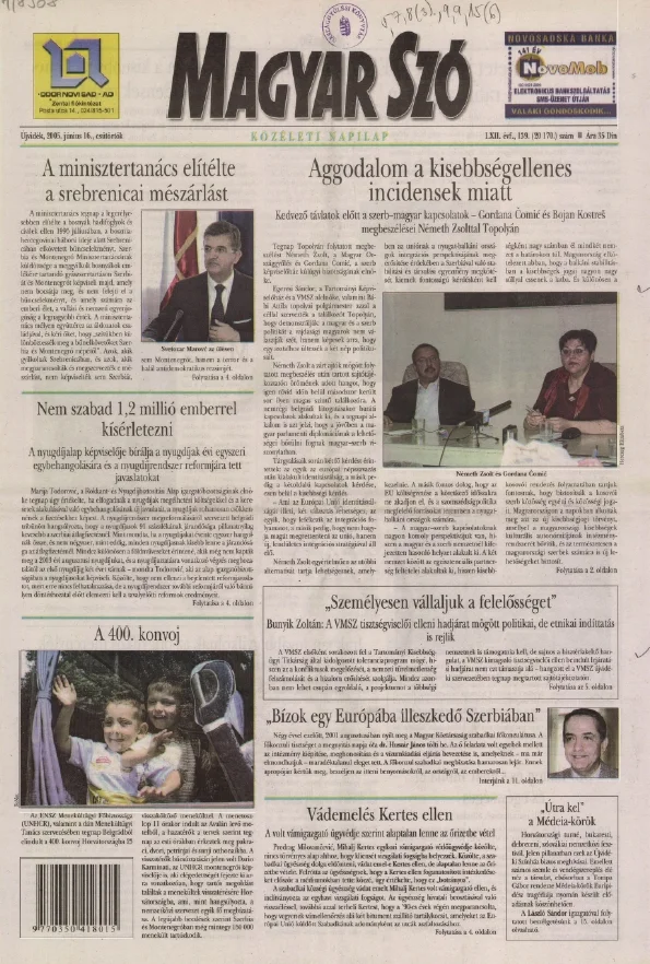 Magyar Szó, 62. évf. 2005. június 16. 139. sz. 1–20. oldal