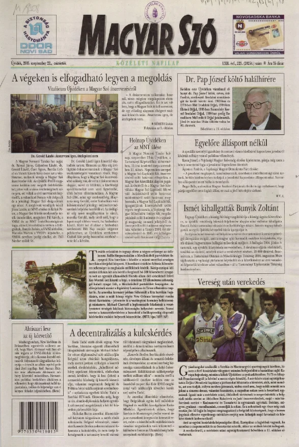 Magyar Szó, 62. évf. 2005. szeptember 22. 223. sz. 1–20. oldal