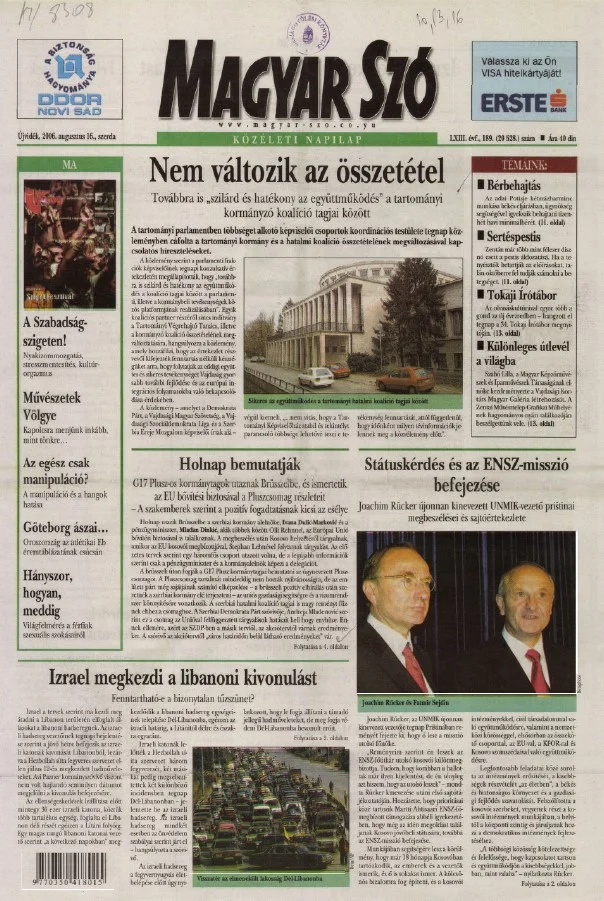 Magyar Szó, 63. évf. 2006. augusztus 16. 189. sz. 1–20. oldal