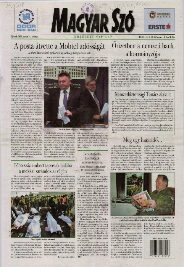 Magyar Szó, 63. évf. 2006. január 13. 8. sz. 1–20. oldal