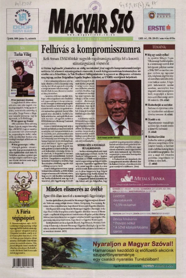 Magyar Szó, 63. évf. 2006. június 15. 136. sz. 1–20. oldal