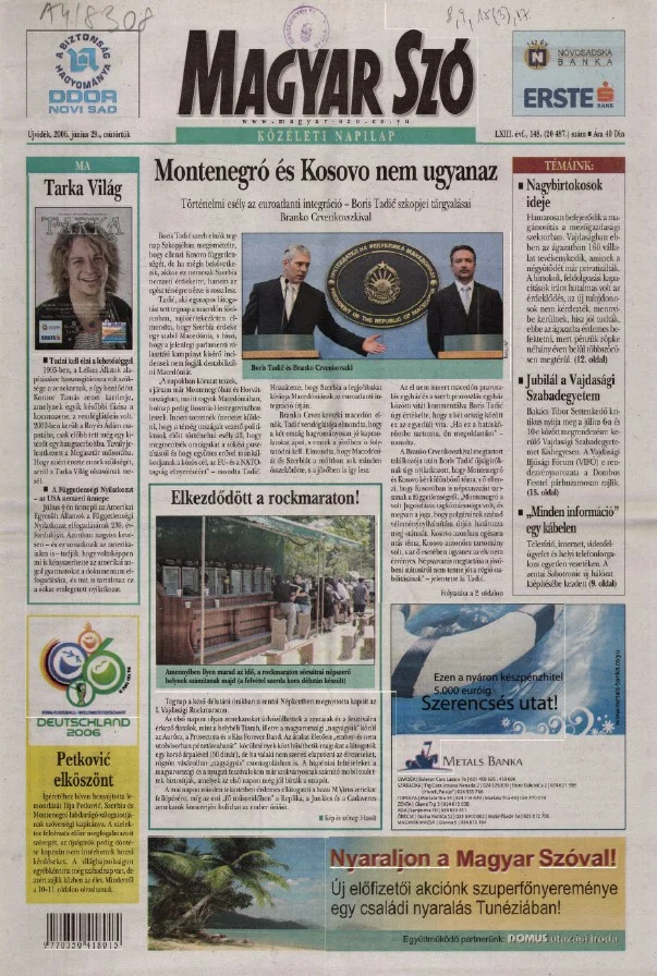 Magyar Szó, 63. évf. 2006. június 29. 148. sz. 1–20. oldal
