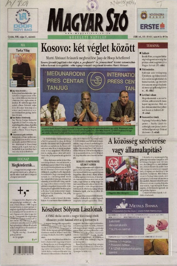 Magyar Szó, 63. évf. 2006. május 18. 112. sz. 1–20. oldal