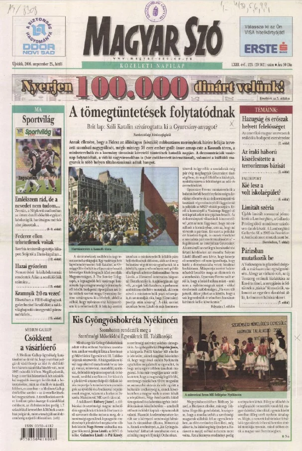 Magyar Szó, 63. évf. 2006. szeptember 25. 223. sz. 1–12. oldal