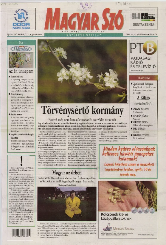 Magyar Szó, 64. évf. 2007. április 6. – 9. 81. sz. 1–40. oldal