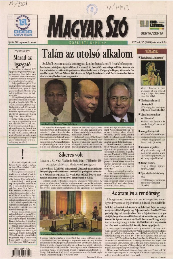 Magyar Szó, 64. évf. 2007. augusztus 10. 185. sz. 1–20. oldal