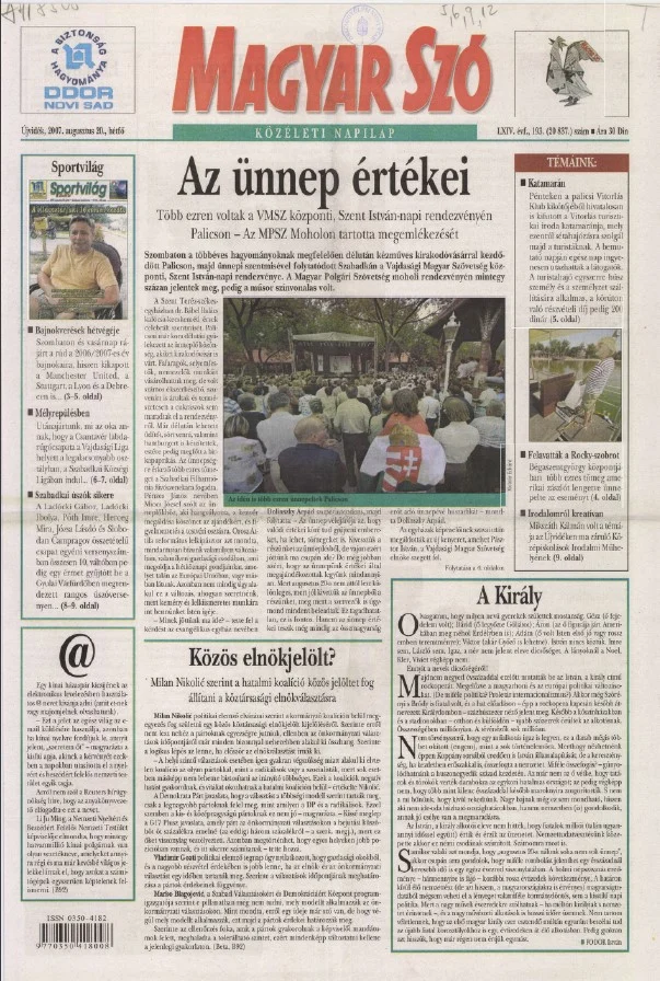 Magyar Szó, 64. évf. 2007. augusztus 20. 193. sz. 1–12. oldal