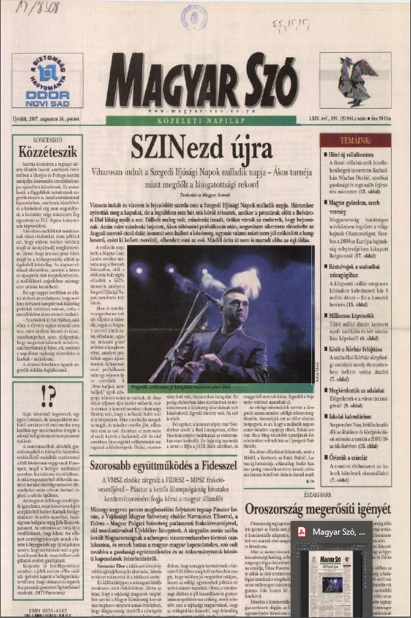 Magyar Szó, 64. évf. 2007. augusztus 24. 197. sz. 1–20. oldal