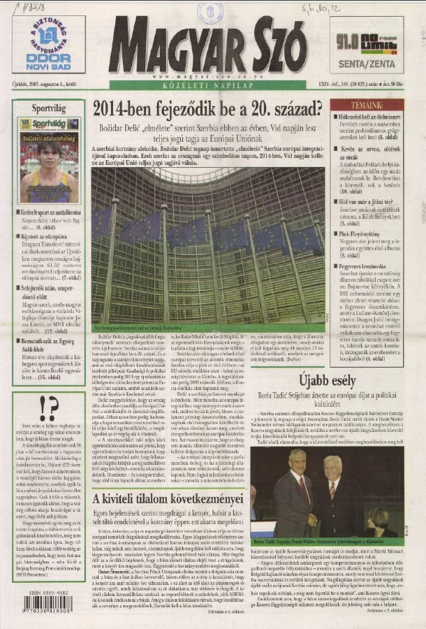 Magyar Szó, 64. évf. 2007. augusztus 6. 181. sz. 1–12. oldal