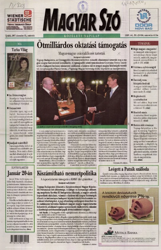 Magyar Szó, 64. évf. 2007. december 13. 292. sz. 1–20. oldal