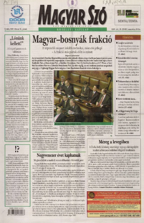 Magyar Szó, 64. évf. 2007. február 16. 39. sz. 1–20. oldal