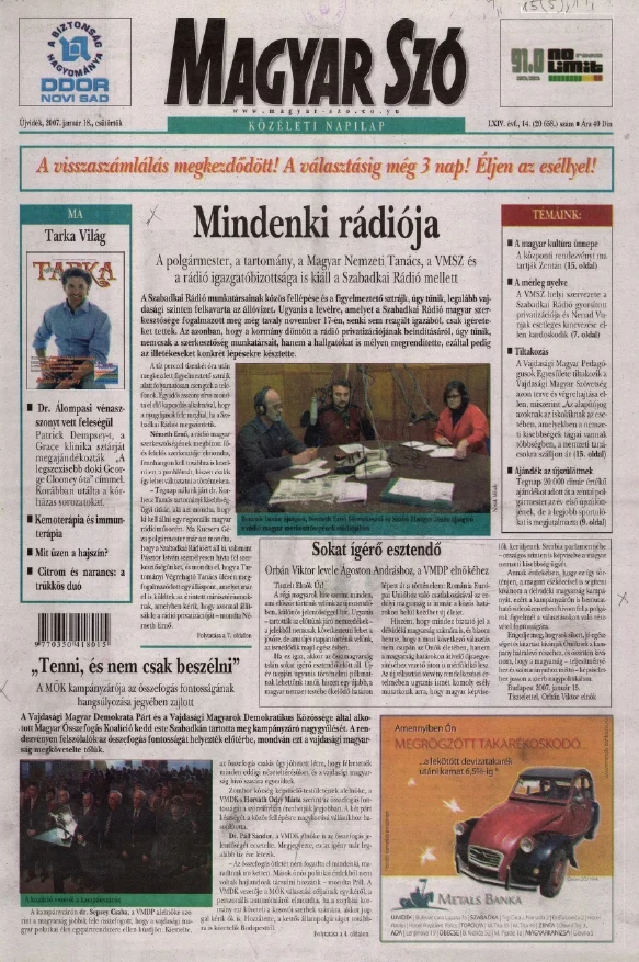 Magyar Szó, 64. évf. 2007. január 18. 14. sz. 1–20. oldal