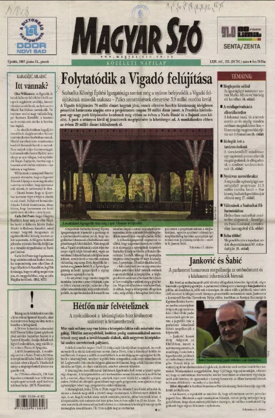 Magyar Szó, 64. évf. 2007. június 15. 137. sz. 1–20. oldal