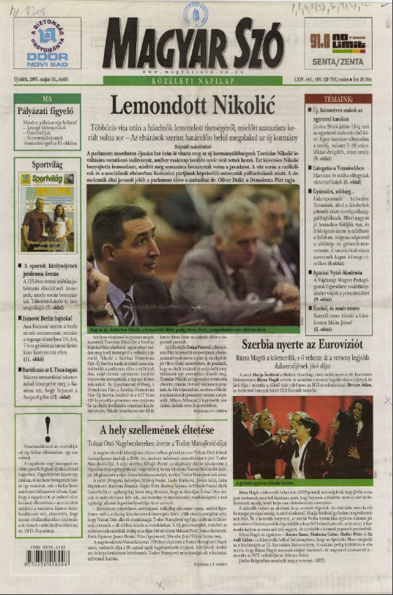 Magyar Szó, 64. évf. 2007. május 14. 109. sz. 1–12. oldal