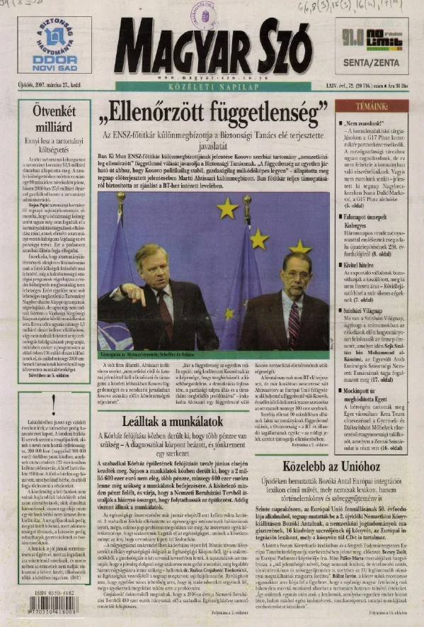 Magyar Szó, 64. évf. 2007. március 27. 72. sz. 1–20. oldal