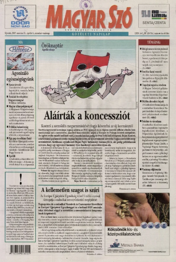 Magyar Szó, 64. évf. 2007. március 31. – április 1. 76. sz. 1–32. oldal