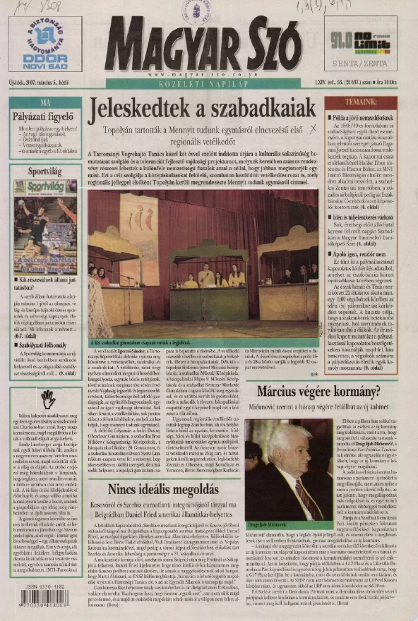 Magyar Szó, 64. évf. 2007. március 5. 53. sz. 1–12. oldal