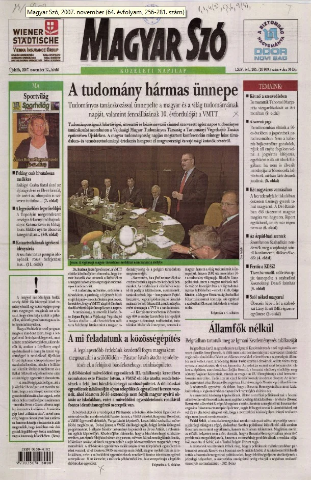 Magyar Szó, 64. évf. 2007. november 12. 265. sz. 1–12. oldal
