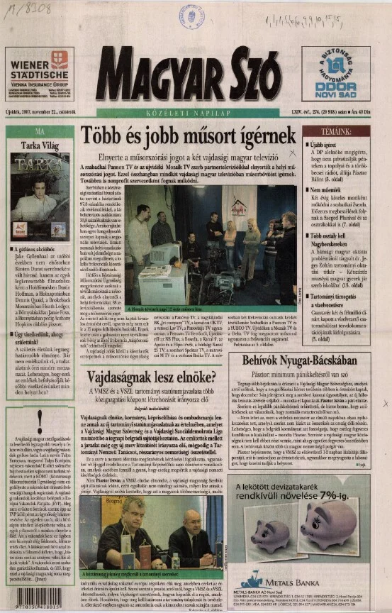 Magyar Szó, 64. évf. 2007. november 22. 274. sz. 1–20. oldal
