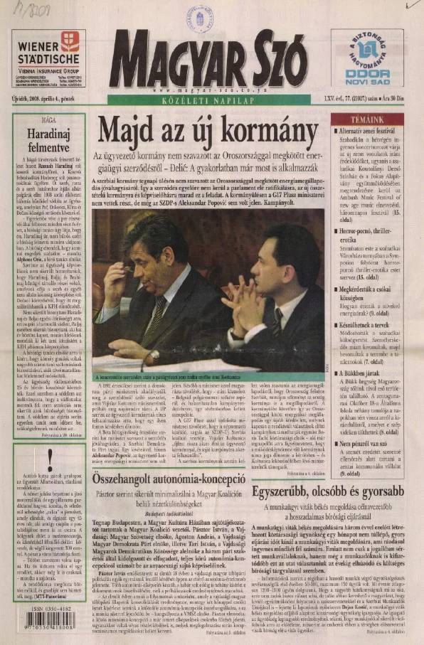 Magyar Szó, 65. évf. 2008. április 4. 77. sz. 1–20. oldal