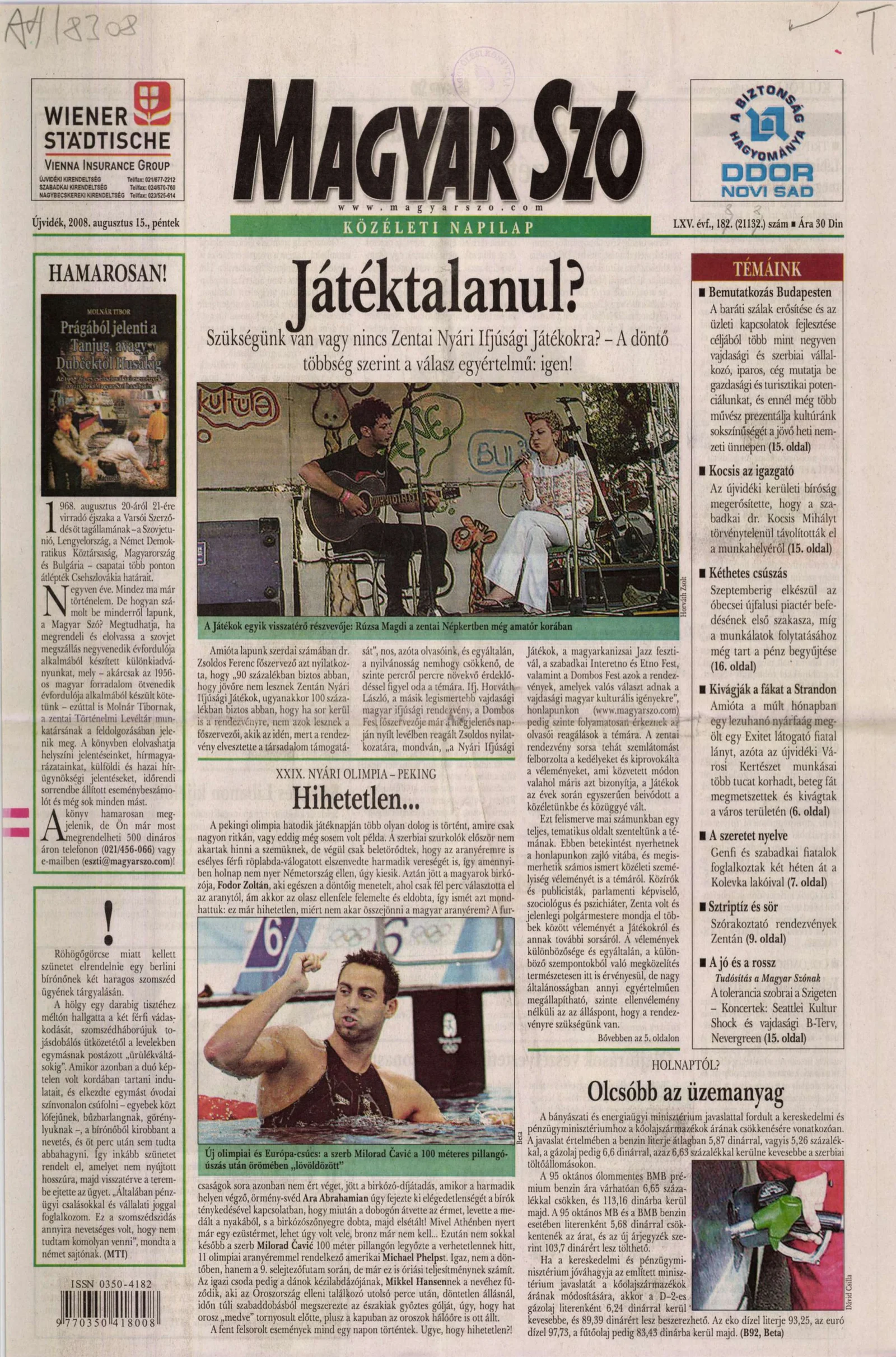 Magyar Szó, 65. évf. 2008. augusztus 15. 188. sz. 1–20. oldal